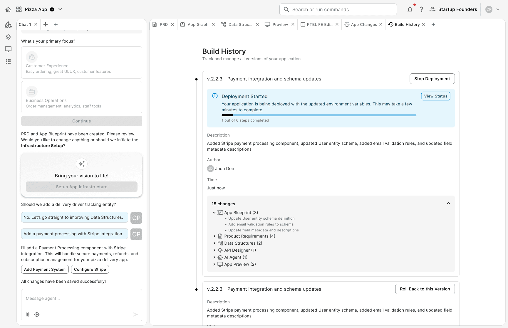 I designed them by hiding complexity and exposing it progressively. While the AI is doing all the heavy work of modifying logic within every layer of the app, the user gains ownership by deploying those changes.