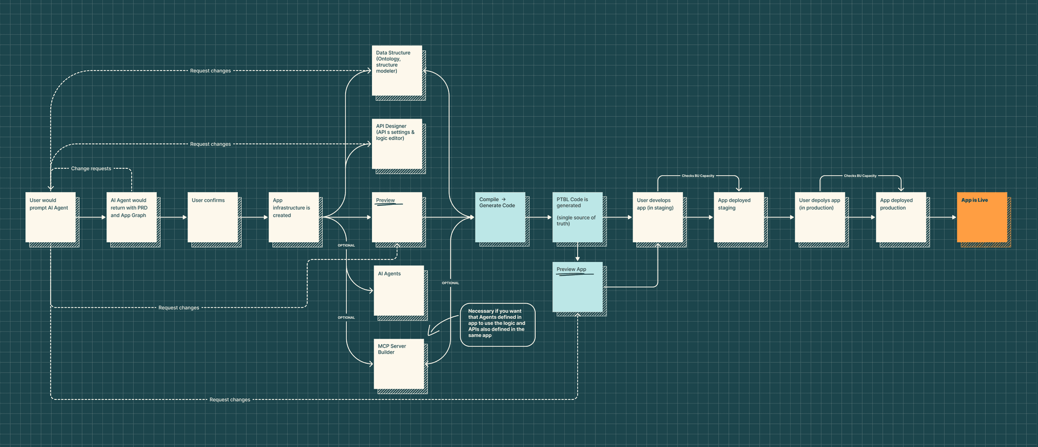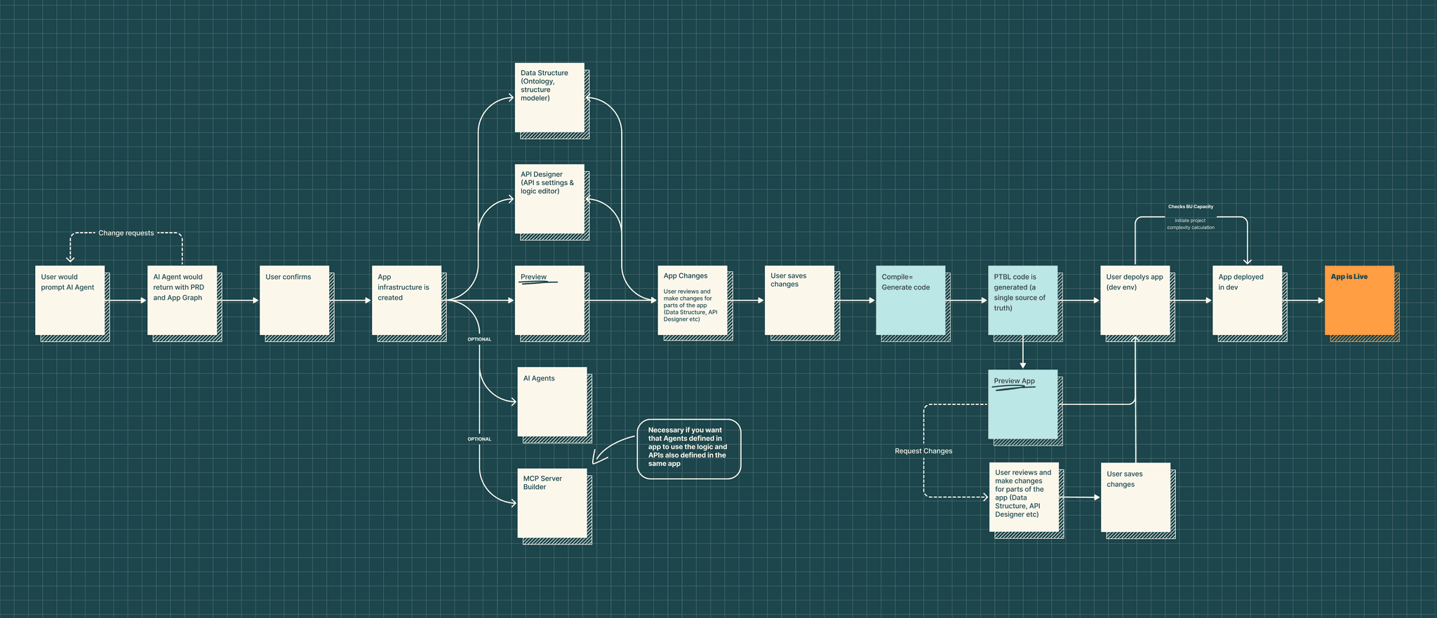 To gain insight into the problem, we had a workshop for drafting the user flow for app creation to align the team with what was to be resolved.