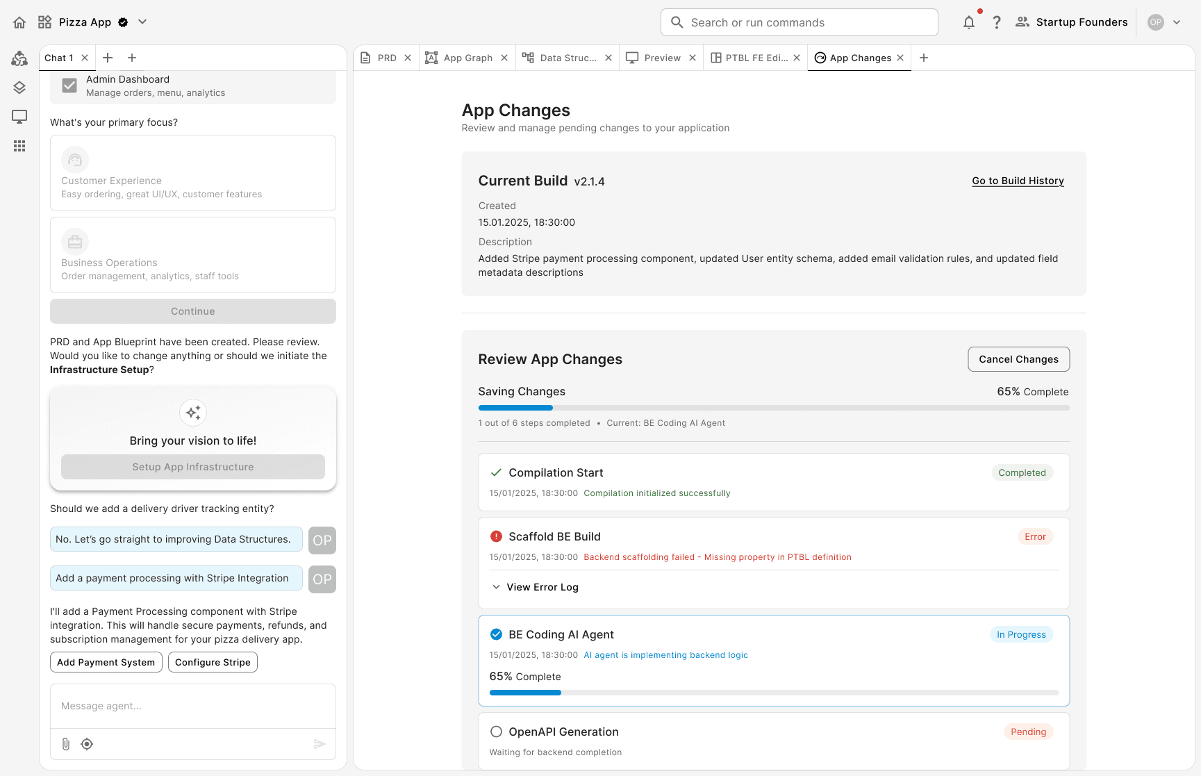 Prompt.Build is an AI app builder that takes you from idea to deployed application by using a structured, graph-to-code-based approach. This ensures better control over changes and synchronization between the frontend, backend, and database.